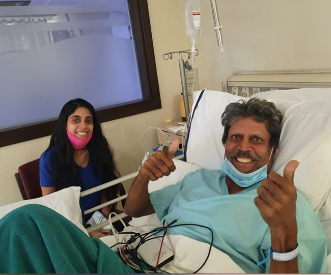 कपिल ने सोशल मीडिया पर एक फोटो भी पोस्ट की है, जिसमें वह अस्पताल के बिस्तर पर लेटे हुए हैं और दोनों हाथों के अंगूठे को ऊपर उठाकर इशारा कर रहे हैं कि सबकुछ ठीक है। फोटो में कपिल की बेटी आमिया भी उनके बगल में बैठी हुई हैं। फिलहाल, कपिल देव ICU में हैं और डॉ. अतुल माथुर और उनकी टीम की निगरानी में हैं। कपिल को कुछ दिनों में अस्पताल से छुट्टी दे दी जाएगी।